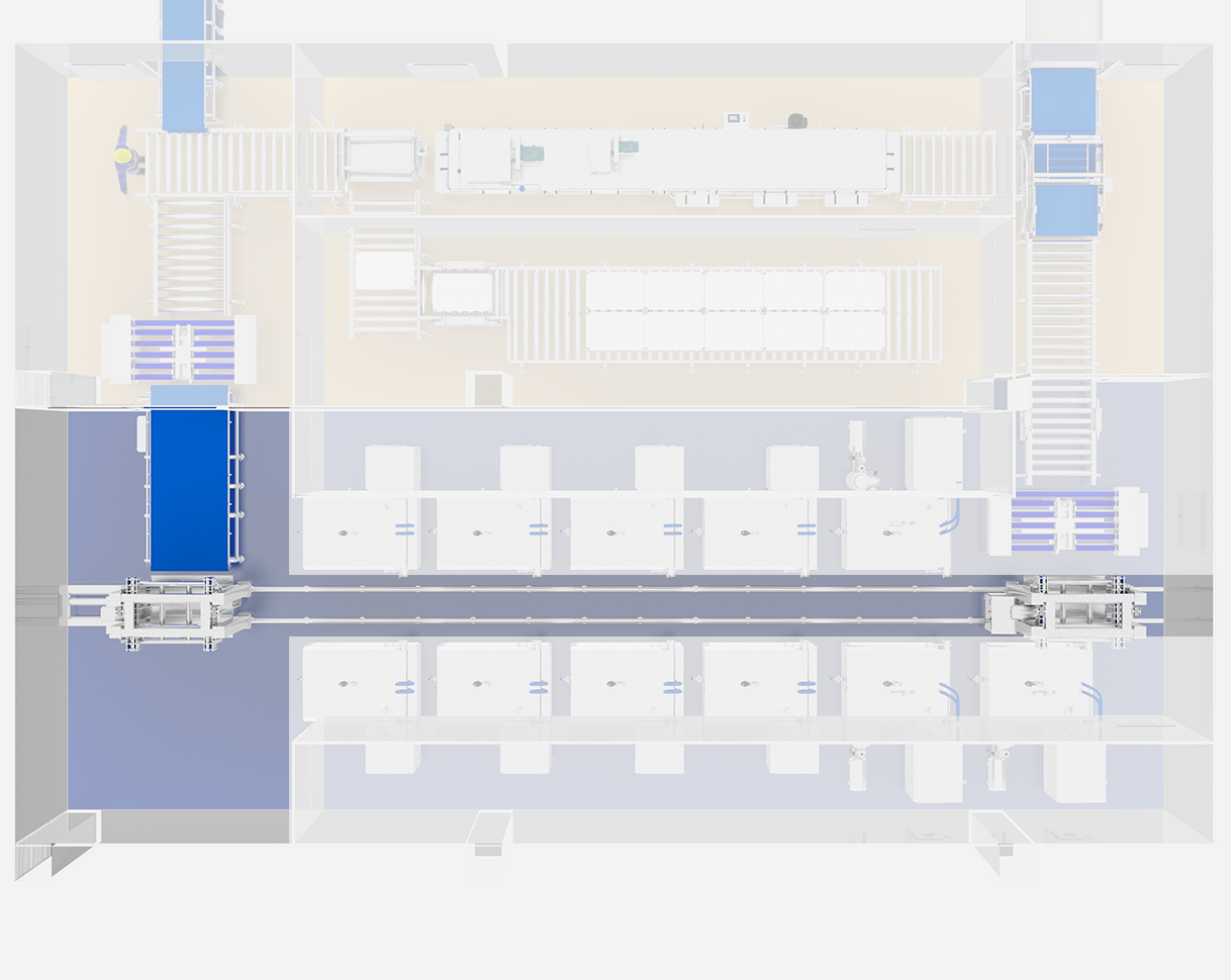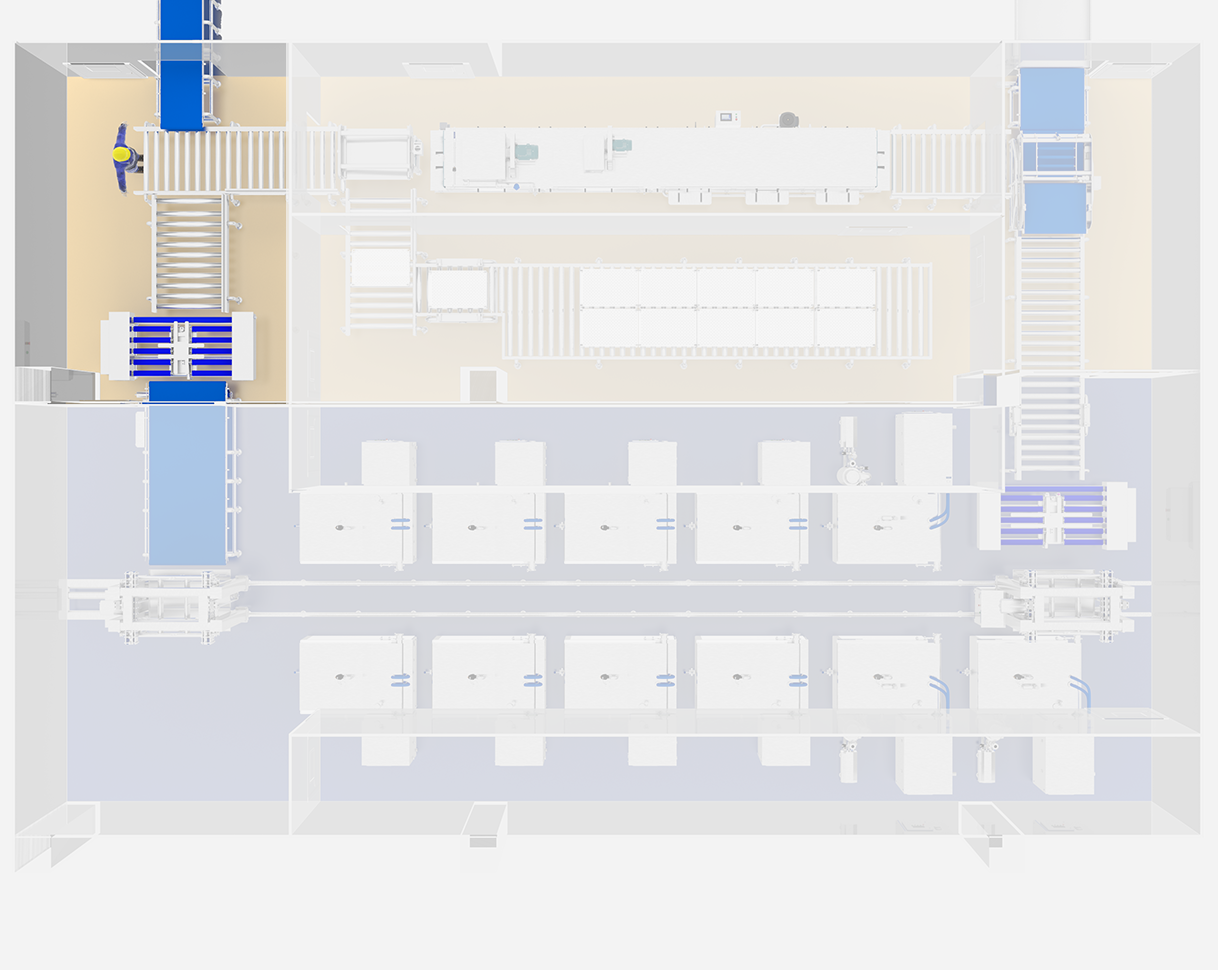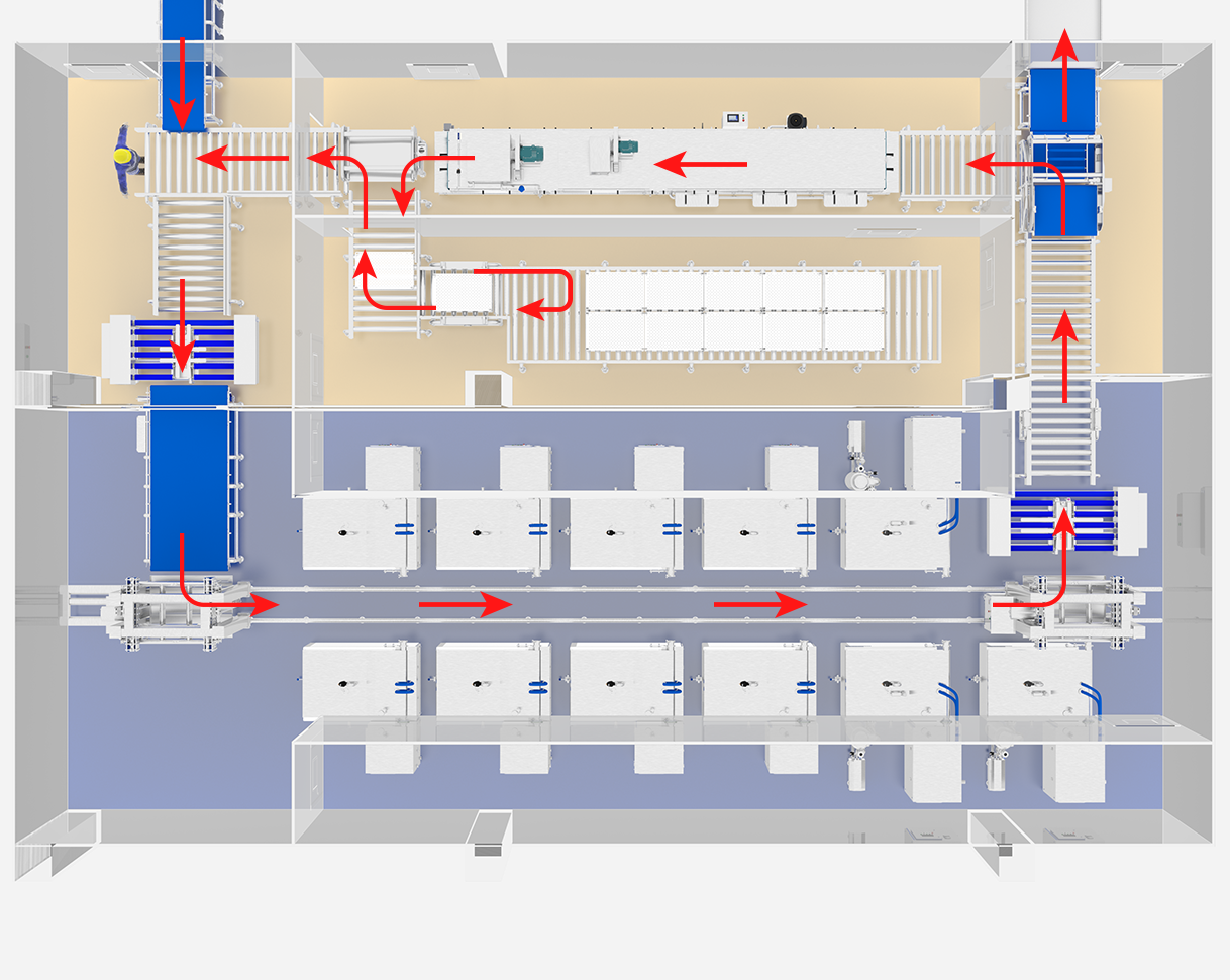 Für die Stapelproduktion von Zongzi. Integriert mehrere Funktionen wie Befüllen von Körben, Wiegen, Transport, Kochen, Abkühlen und Reinigen der Körbe in einen vollautomatisierten Prozess.